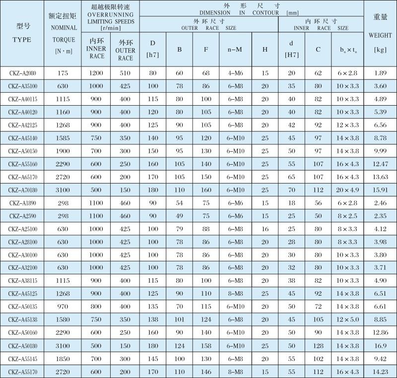 產品描述:CKZ-A系列為楔塊式單向離合器,內含兩套深溝球軸承支撐及油封。依照不同需要,出廠時內含潤滑油或潤滑脂。