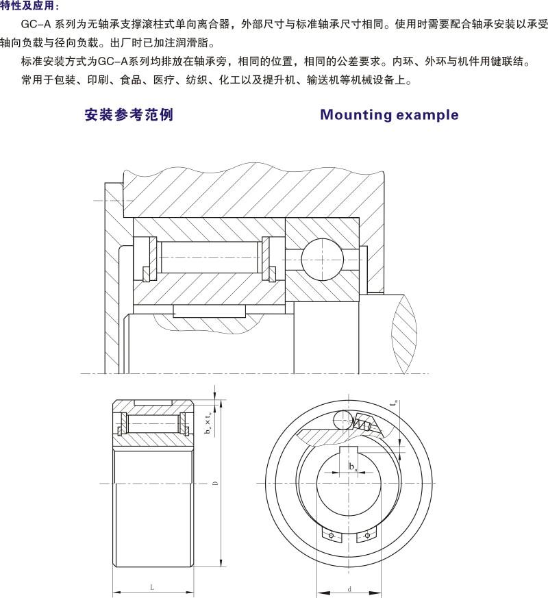 產(chǎn)品描述:GC-A系列為無軸承支撐滾柱式單向離合器,外形尺寸與標準軸承相同。