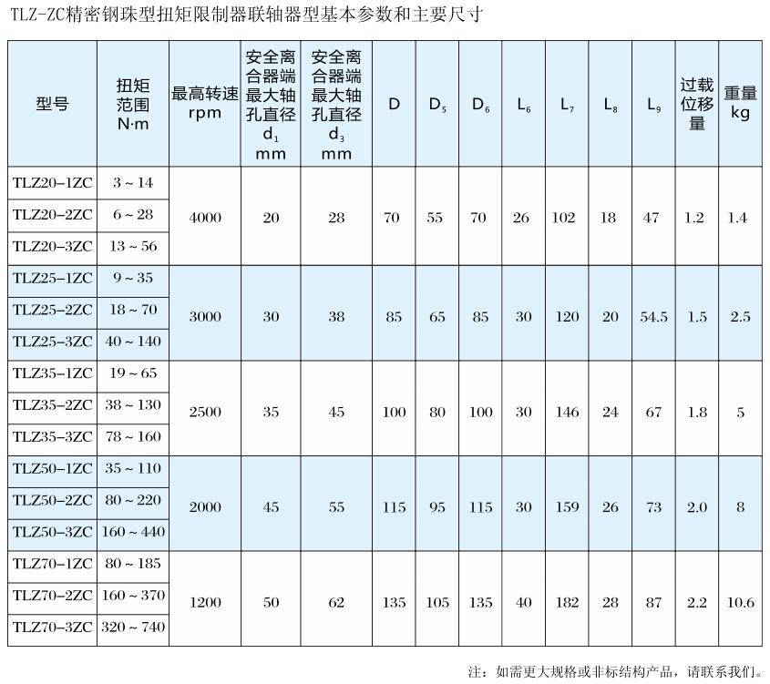 TLZ-ZC精密鋼珠型扭矩限制器· 產品描述The product description