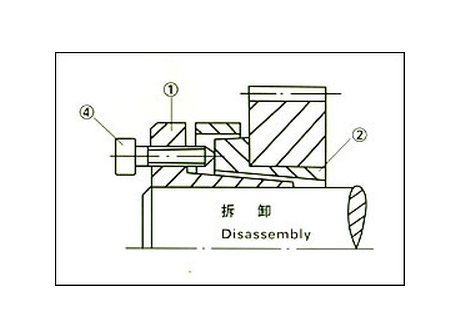 2、拆卸:拆卸時先將全部螺栓放松幾圈。然后在拆卸的螺孔內交叉地擰入螺栓④頂松脹套。