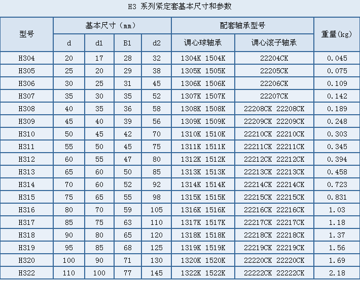 緊定套用于將圓錐孔調心軸承(調心球軸承、調心滾子軸承)固定在無軸肩軸上,結構簡單,工作可靠,軸承調換方便、廣泛使用于紡織、輕工、造紙、冶金、皮帶運輸及輸送設備等行業。